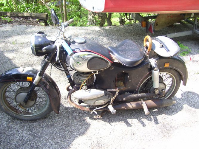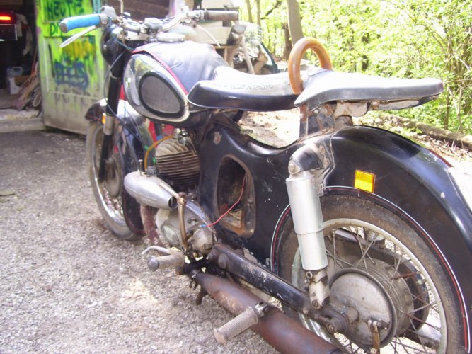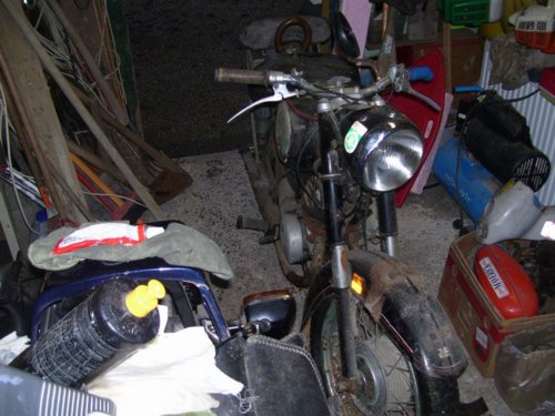 Ankauf, Benzin getauscht, Batterie angeschlossen, nach 21 Jahren Stillstand nach 2 x kicken sofort angesprungen. Nach einer kleinen Proberunde beginnt nun eine einfache Restauration. Soweit möglich, sollte teilweise der Originalzustand hergestellt werden, Einige Teile werden aber neu lackiert werden müssen, da sie zu stark verwittert sind.
